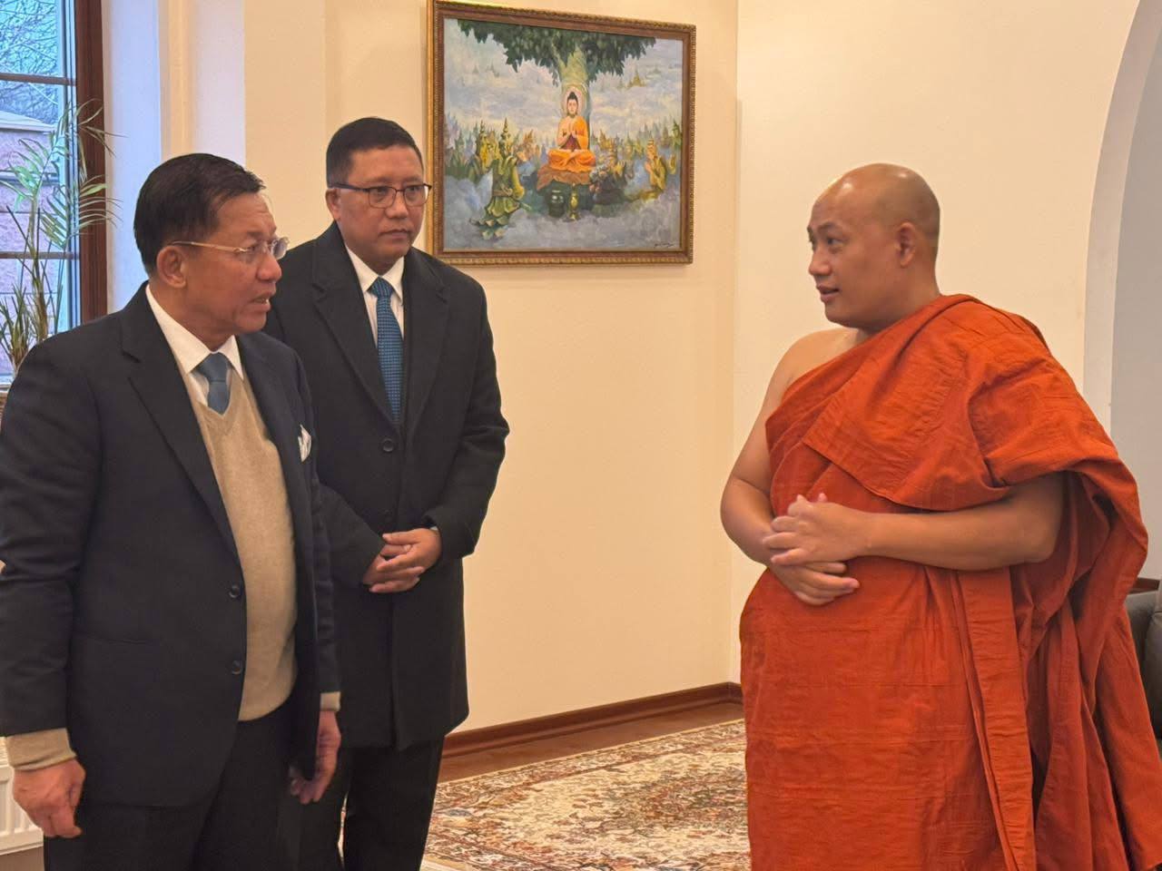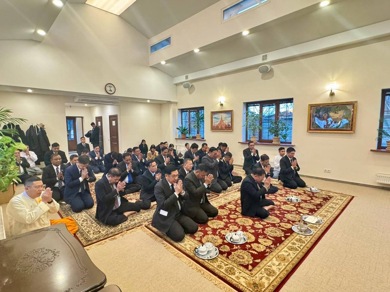 President of the Russian Federation, a delegation led by Senior General Min Aung Hlaing, Prime Minister of the Republic of the Union of Myanmar, visited the Moscow Buddhist Center during an official state visit and offered donations to the revered monks."